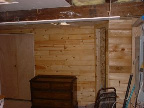Another view of the corner of the Den. Also, this is a view of the wall that was built to support the beam and joist for the upstairs.