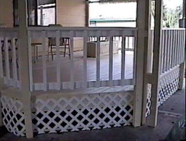 Left side view of the Deck Addition, Railing, and White Lattes.