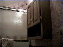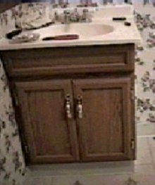 Cabinets you have to assemble yourself from a kit installed in a bathroom in a corner and over the toilet of the bathroom